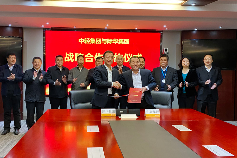12月15日,际华集团党委副书记、总经理袁海黎一行赴中国轻工集团,与中轻集团党委书记、董事长张万顺座谈,并代表际华集团与中轻集团党委副书记、总经理郭建全签订框架合作协议。
