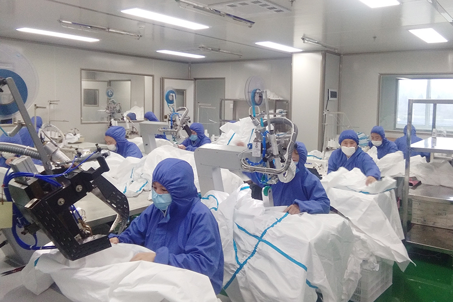 新冠肺炎疫情发生以来,际华集团积极响应党中央、国务院的决策部署,闻令而动,组织所属企业迅速备产转产医用防护服。际华3502公司等11户企业秉承“战时保军、急时救援、平时为民”的使命担当,以“战时”状态,奋力抢产增产,争分夺秒为一线白衣天使制作抗击疫情的“金盔铁甲”,仅用4天时间实现了医用防护服的从无到有,11天日产突破4万套,22天日产突破10万套,创造了军需人“支前”的新速度。截止目前,际华集团日产医用防护服达到了14万套,累计生产医用防护服、隔离服200余万套,单日医用防护服最高产能达到了全国的40%,有力地支援了武汉等地的疫情防控阻击战,展现了央企的“硬核保障”。