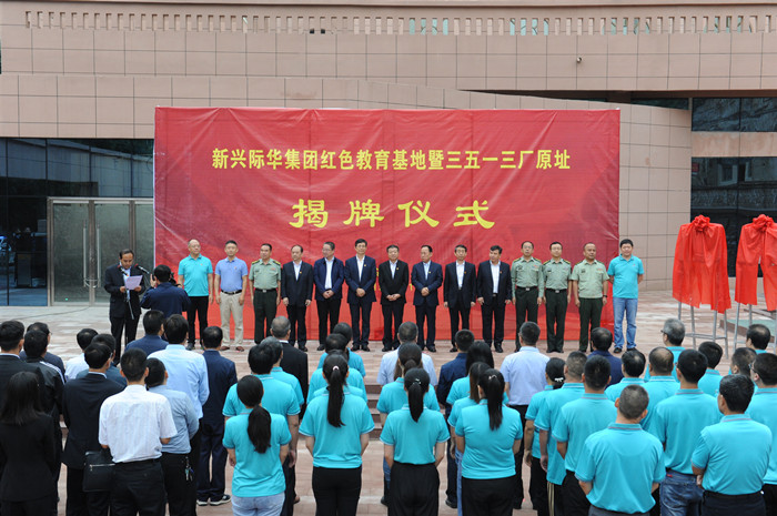 揭牌仪式上,集团公司党委书记、董事长张雅林和志丹县委书记李建强共同为新兴际华集团红色教育基地和三五一三厂原址揭牌。