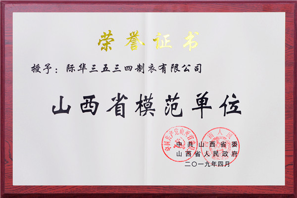 近日,际华3534公司被中共山西省委、山西省人民政府授予“山西省模范单位”荣誉称号。
