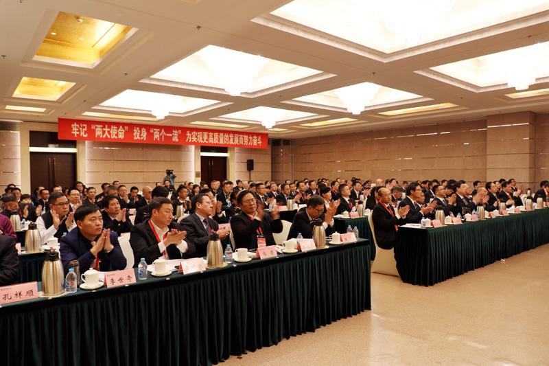 党委副书记向诗国代表际华党委作了《加强党的领导 强化基础建设 为际华集团高质量发展提供坚强保证》的党委工作报告,从加强党的全面领导、不断升华思想建设、不断加强基础建设、精干高效人才队伍建设、扎实推进作风建设、认真落实党风廉政建设、不断巩固和谐企业建设、以际华特色党建工作体系保障发展总结了2018年工作,分析当前党建工作面临的形势和存在的问题,提出了际华集团党委2019年“1118”工作思路:牢牢把握一条主线,牢固树立一个理念,深化构建一个体系,突出狠抓八项工作。突出政治建设,发挥领导作用;深化理论学习,加强思想引领;强化政治功能,夯实组织基础;抓班子管干部,建好人才队伍;落实“两个责任”,确保风清气正;加强群团工作,凝聚职工力量;注重隐患治理,确保和谐稳定;深化特色品牌,推进体系建设,为完成际华集团的改革发展任务提供坚强保证和强大动力。