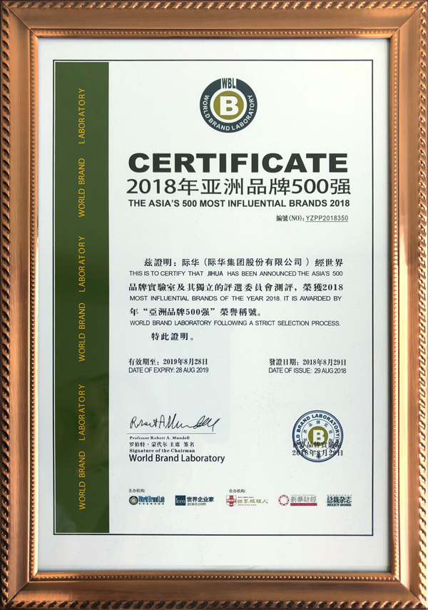 根据世界品牌实验室(World Brand Lab)的最新评估结果,际华集团入选2018年“亚洲品牌500强”榜单,排名再创新高,位列第350名,较去年提升25名。自2015年以来,际华集团已连续四年入选该榜单。