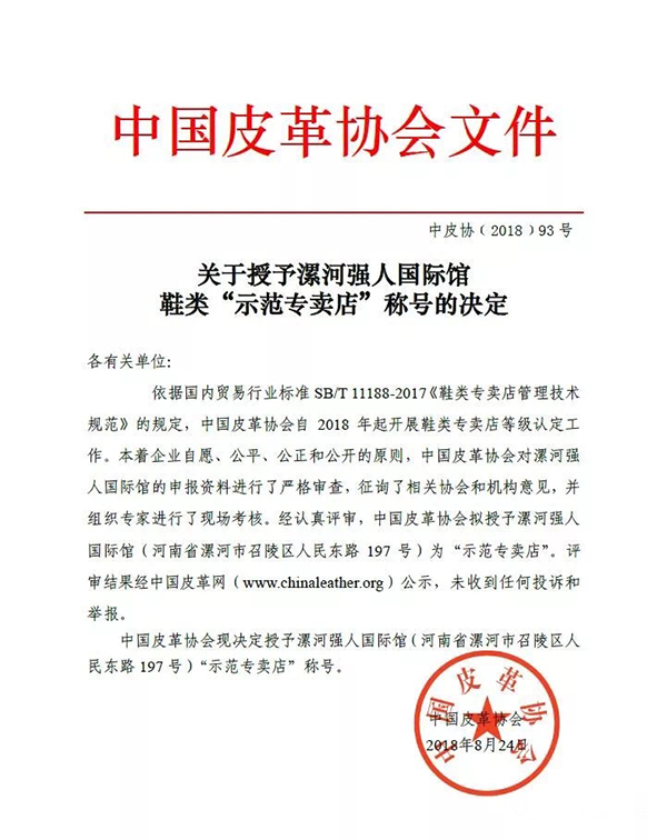 近日,际华集团荣获“中国皮革行业功勋单位”,际华3513公司荣获“中国皮革行业杰出单位”、公司“巡洋舰”品牌荣获“中国真皮名鞋”称号,际华3514公司“神行太保”品牌荣获 “中国真皮鞋王”称号、公司党委书记、执行董事高永庆被授予“中国皮革行业杰出人物”荣誉称号,际华3515公司“强人”品牌荣获“中国真皮鞋王”称号、公司党委书记、执行董事范子坤被授予“中国皮革行业杰出人物”荣誉称号,际华3515漯河强人国际馆还荣获鞋类“示范专卖店”称号。同时,际华3513公司和际华3515公司被中国皮革协会授予 “企业信用评价AAA级信用企业”荣誉称号。