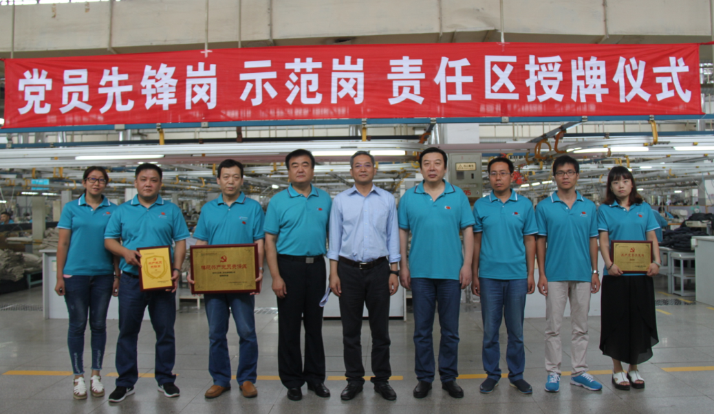 二是举行党员先锋岗、示范岗和模范责任区授牌仪式。按照际华集团党委“七一”命名的党员先锋岗、党员示范岗和党员模范责任区,领导班子成员分别在联系点企业的部室班组和生产岗位分别对3502公司杨毅等25个党员先锋岗、3537公司晋齐怀等25个党员示范岗和3509公司后纺车间细纱丁班等22个党员模范责任区进行了授牌,进一步发挥典型示范引领作用,推动了“两学一做”学习教育向纵深开展。