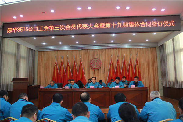 12月19日,际华3515公司公司工会第三次会员代表大会暨第十九期集体合同签订仪式隆重召开。公司领导班子成员及工会会员代表共101人参加会议。大会由公司党委副书记、纪委书记周咏友主持。