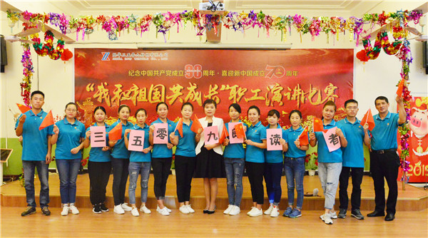 “吃水不忘挖井人,幸福全靠共产党。70年光阴,记载了中国的辉煌,见证了中国的发展,70年春夏秋冬,祖国日新月异,突飞猛进,成长为世界强国。千言万语浓缩成一句话——祖国,我爱您! ”演讲比赛由织造技术部王亚峰演讲的《祖国,我爱您!》拉开整场比赛的序幕。