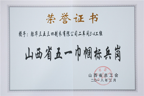 三月捷报传 巾帼展风采 ——际华3534公司集体和个人喜获“山西省五一巾帼标兵岗”,“山西省五一巾帼标兵”荣誉称号