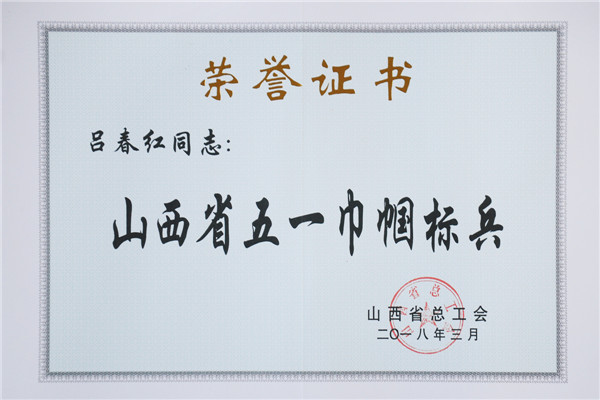 金色的奖章讲述劳动美。在春风化雨,杨柳依依的春天,山西省总工会传来喜迅,际华3534公司二车间3-4工组喜获“山西省五一巾帼标兵岗”称号,技术处模板中心工艺技术员吕春红同志喜获“山西省五一巾帼标兵”荣誉称号。