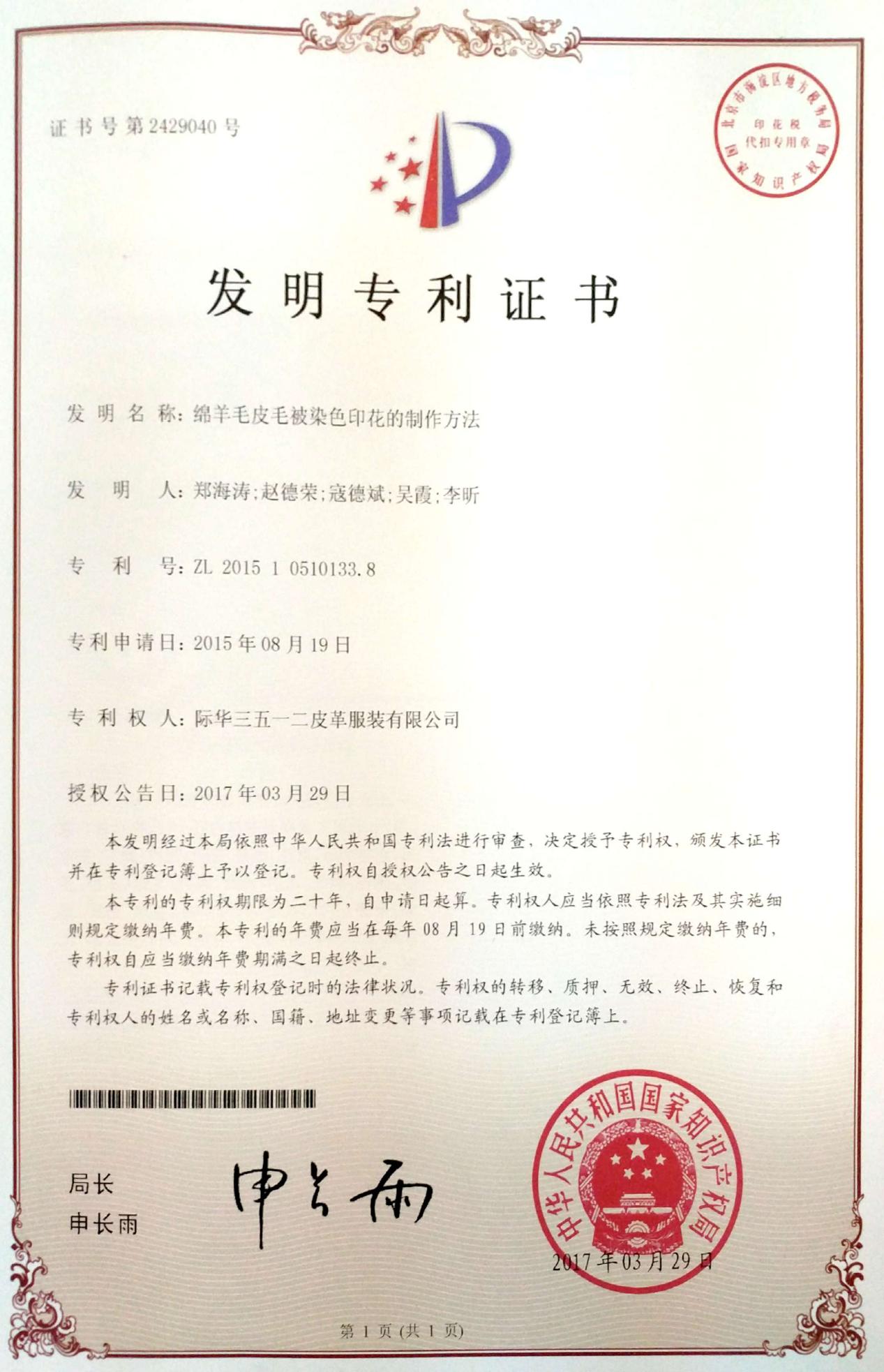 近日,际华3512公司两项发明专利获得国家知识产权局授权,分别是“特种用途高强度牛犊皮的制作方法”和“绵羊毛皮毛被染色印花的制作方法”。与实用新型和外观专利相比,发明专利更具发明创造性,这两项发明专利的授权,在提高际华3512公司产品品质的同时丰富了产品种类,使际华3512公司在空警、民航、高端奢侈品等行业更具竞争力。
