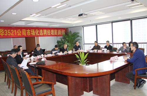 此次,际华3521公司市场化选聘的岗位是总经理和副总经理。本次报名并经过审核合格参与应聘人员9人,其中际华3521公司8人,外部单位1人。选聘的程序分笔试和面谈两个环节,注重应聘人员对党的十八大以来形成的新形势、集团“十二五”发展新格局、集团“十三五”规划新目标的理解,注重理论和实践的结合、注重本职岗位和“一岗双责”的结合,注重日常管理与情商的结合。应聘人员在完成指定的笔试进入面谈环节后,应聘者首先用6分钟时间作自我介绍,自我画像,之后根据抽签情况完成答题,最后回答选聘组的提问。