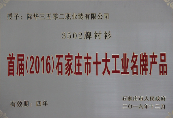 近日,首届(2016)石家庄市十大工业名牌产品评选结果揭晓,际华3502公司产品“3502 牌衬衫”被评为石家庄市十大工业名牌产品荣誉,名列前茅。