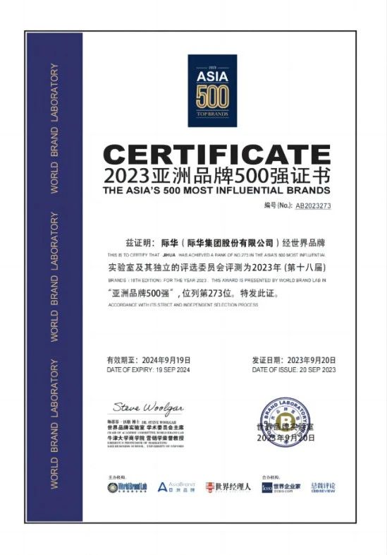 近日,由世界品牌实验室主办的“亚洲品牌大会”在香港召开,本届大会主题为“科技如何推动品牌转型和改变消费者行为”,这是世界品牌实验室第十八次对亚洲品牌的影响力进行测评。大会发布了2023年《亚洲品牌500强》排行榜,共有20个国家和地区的500个品牌入选。其中,际华股份入围前300强榜单,位列第273位,较去年提升3个位次,品牌价值均稳步提升。