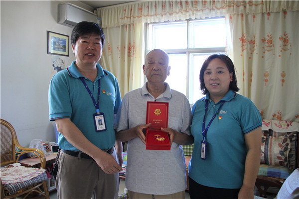 6月4日,际华3514公司全面启动“光荣在党50年”纪念章颁发工作。党委副书记、纪委书记张志永,党群工作部副部长赵丽英一同为公司的离休老党员颁发了“光荣在党50年”纪念章,为老党员带去了诚挚的问候与祝愿。