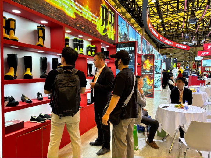 际华3513公司与际华3539公司重点展示了全新升级的功能防护系列,针对石油、消防、电力、矿山等特殊行业需求,展示具备防砸、防刺穿、绝缘、防静电等高性能的安全鞋靴。际华3514公司与际华3515公司展示了安全防护、户外运动、职业配装、商务休闲、高端定制、应急救援、工矿鞋靴等品类的全系列鞋靴产品。结合人体工程学设计与新型轻量化材料,做到舒适度与防护性的完美平衡。