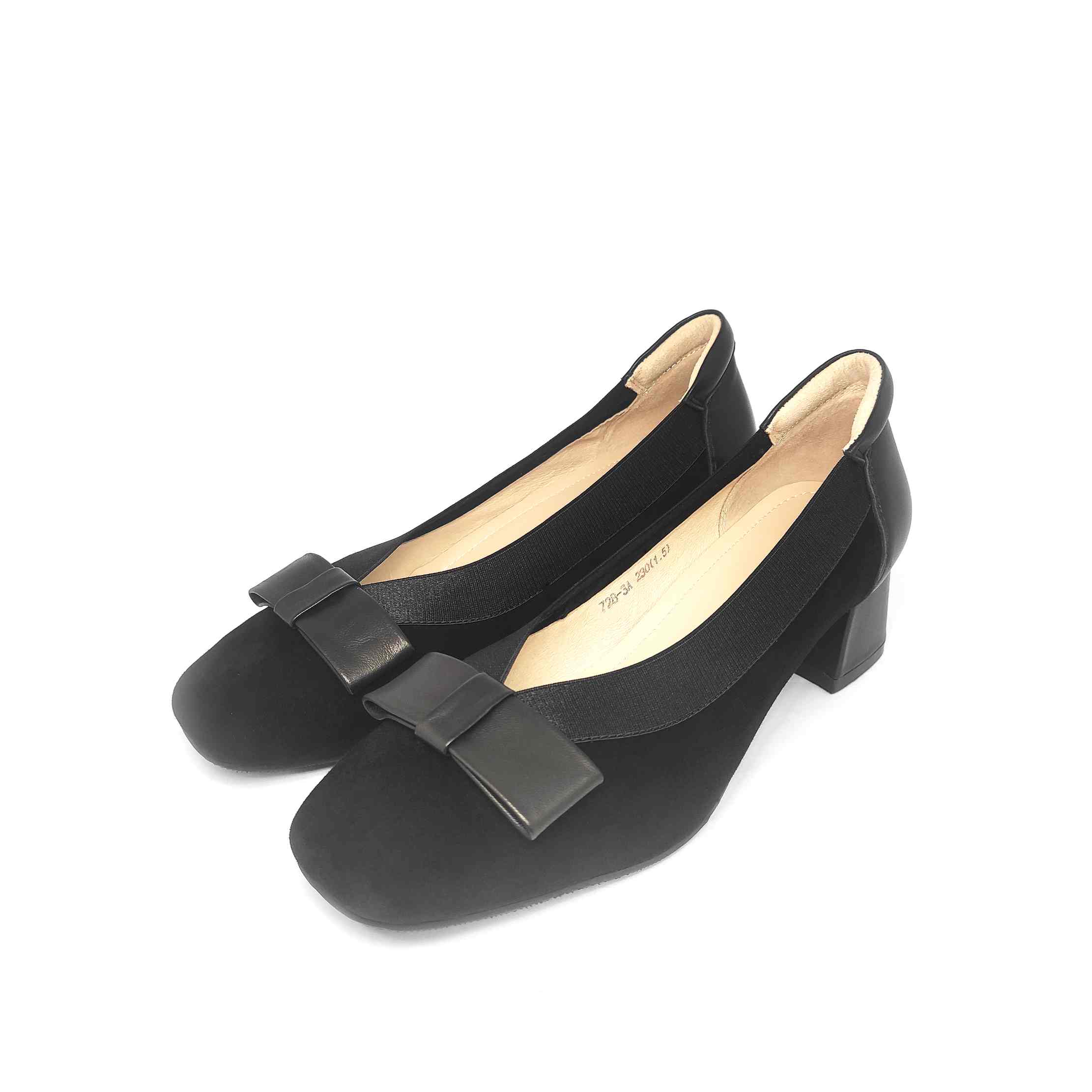 时尚白领经典百搭小低跟蝴蝶结女鞋728-3黑羊猄
