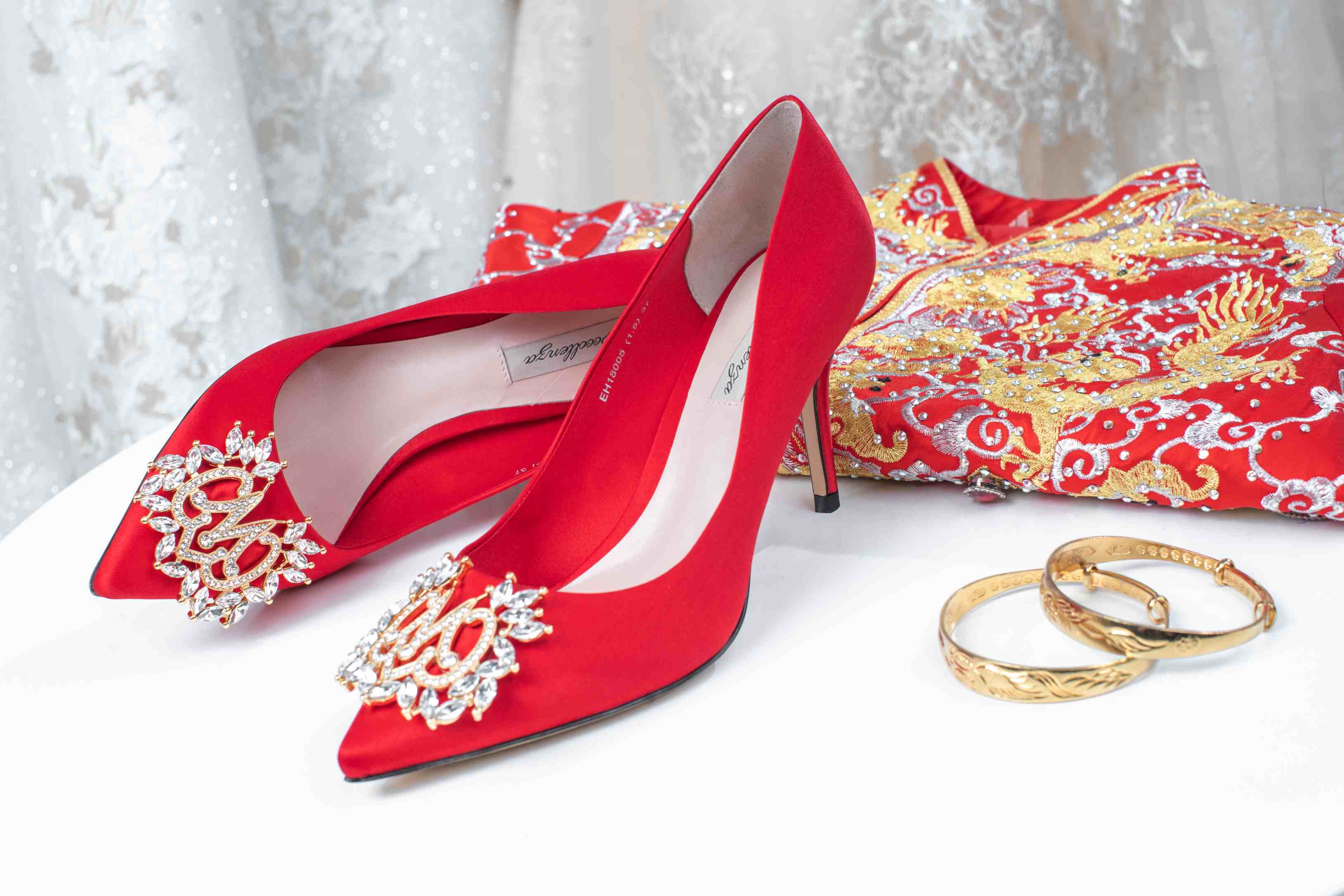 婚鞋中式晚宴高跟鞋真丝材质18005